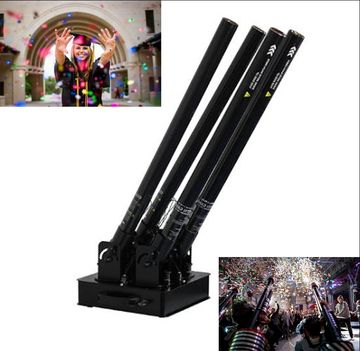 Featuring four individual confetti cannons, this machine allows for a synchronized release of confetti, creating a stunning and immersive visual experience. Each cannon can be independently controlled, giving you the flexibility to create unique confetti effects tailored to your event's specific needs. Powered by electricity, this confetti machine eliminates the need for CO2 tanks, You can also adjust the angle and trajectory of each cannon to create diverse and captivating confetti effects.